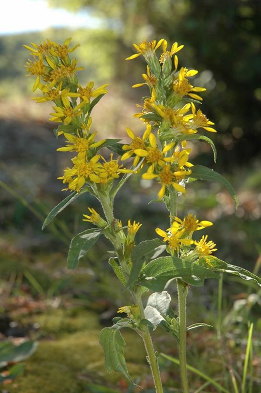I fusti, eretti e sottili, sostengono foglie allungate e leggermente dentate, di un verde deciso, mentre nella parte superiore si sviluppano numerosi piccoli fiori riuniti in grappoli che formano una sorta di pannocchia dorata. Durante la fioritura, la pianta sembra illuminarsi, creando macchie di colore caldo che risaltano nel paesaggio naturale.
