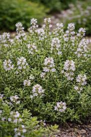 I suoi fusti sono sottili e leggermente legnosi alla base, mentre le foglie sono piccolissime, allungate e ravvicinate, di colore verde-grigiastro. Se sfiorate, rilasciano subito un profumo forte, caldo e aromatico, molto caratteristico.